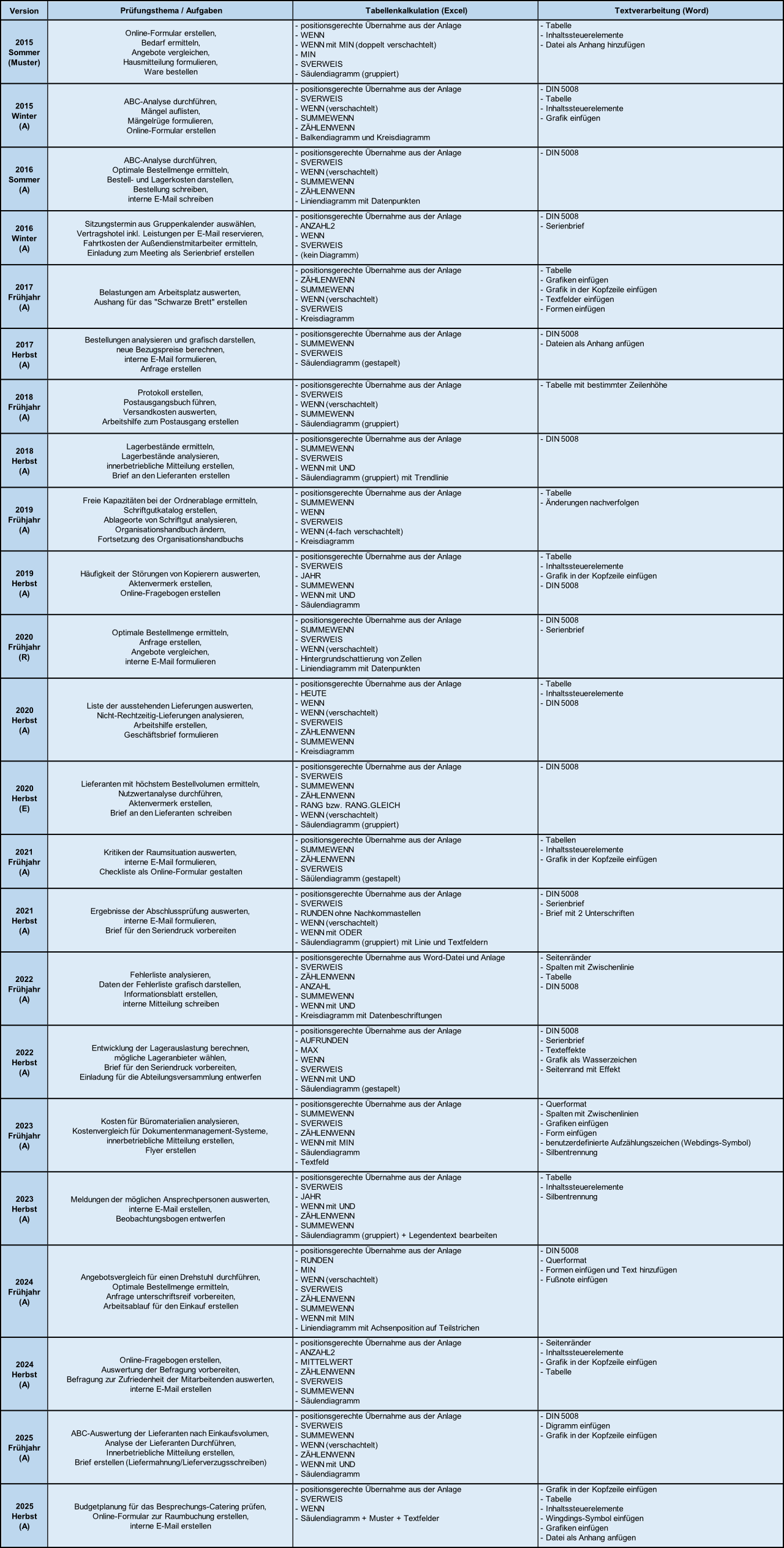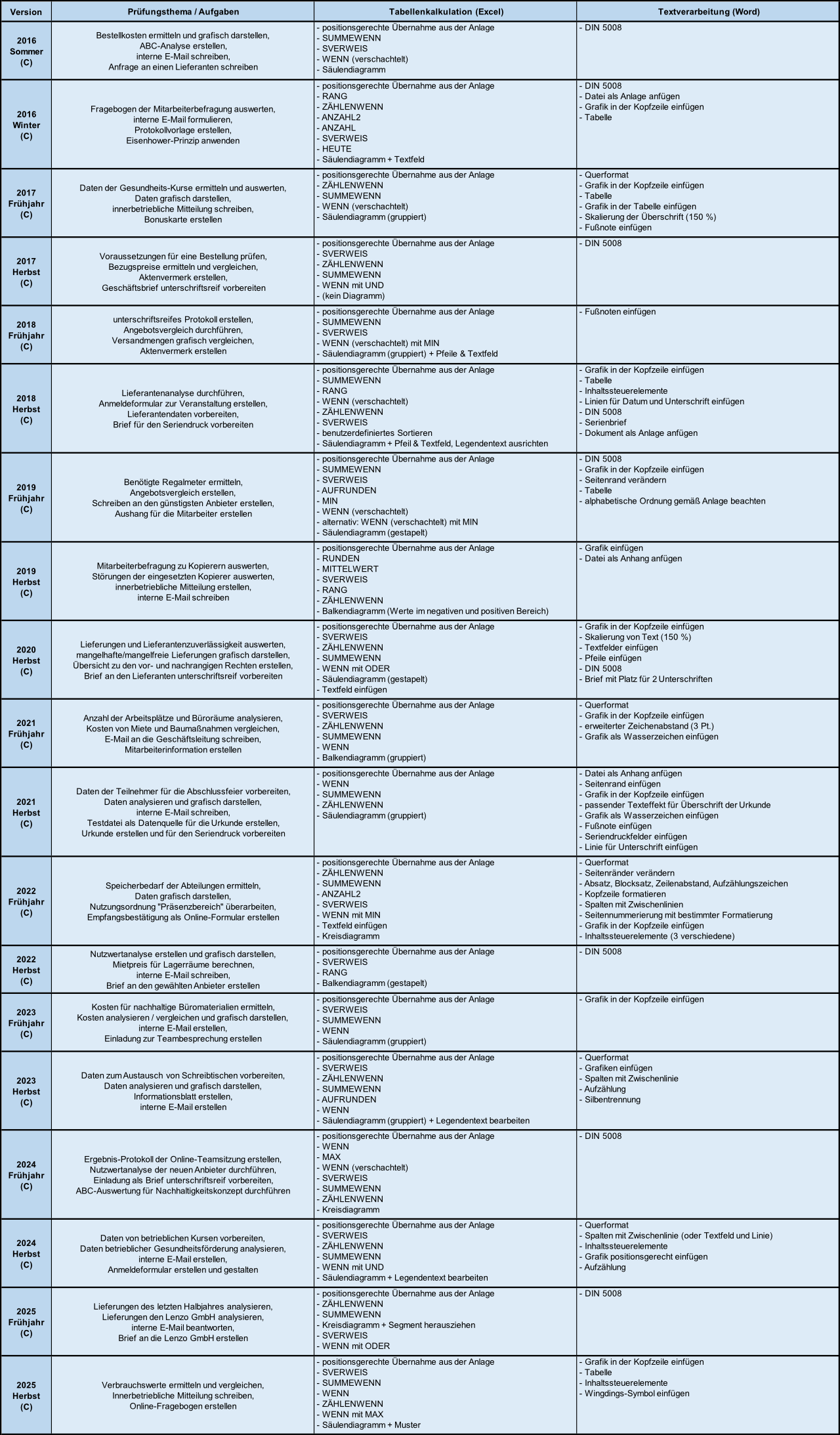 Im Folgenden finden Sie von mir erstellte Übersichten, mit den Inhalten sämtlicher o. g. IHK-Prüfungen der vergangenen Jahre...