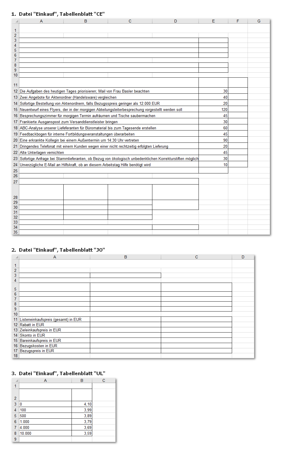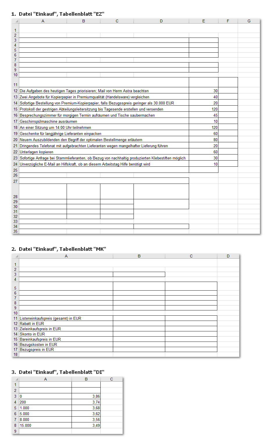 (kwe und gtf haben lediglich andere Werte) - Einkauf: EZ, MK und DI sowie CE, JO und UL